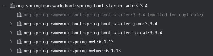 - spring web(spring-boot-starter-web)에는 Spring MVC를 사용하기 위한 여러가지 인프라스트럭처 구성요소들이 포함되어있다. 재밋는 점은 spring-boot-starter-tomcat을 포함하고 있다는 점이다. 즉 이미 WAS를 내장하므로 애플리케이션배포를 위한 별도의 was 환경을 고민할 필요가 없다.(Spring Boot application의 배포 형태가 war가 아닌 jar임을 상기시켜보자. 이미 자체로 다 가지고 있다.) spring boot의 auto configuration의 힘은 참으로 막강하다.