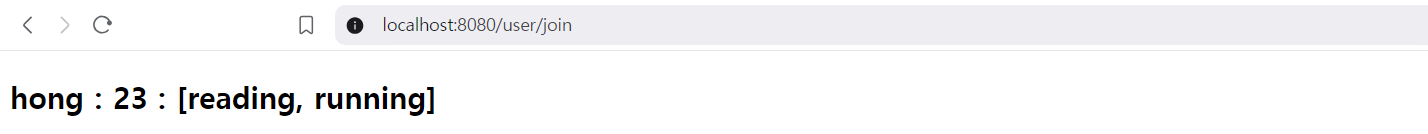 .attribute("message", new User("hong", 10, List.of("reading", "running"))));