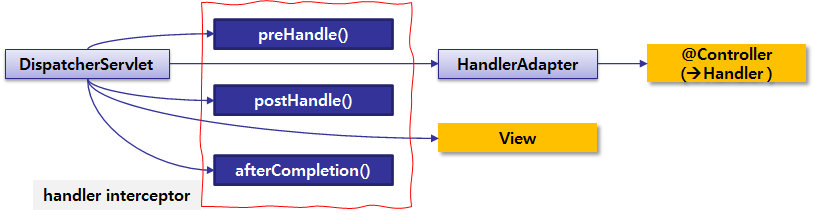 Handler Interceptor는 말 그대로 handler(Controller)로 가는 요청을 가로채는 녀석으로 Servlet의 Filter와 유사한 녀석이다.