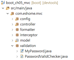 특히 주목할 점은 @Target 정보가 ElementType.TYPE이라는 점이다. 즉 MyPasswordEquals는 클래스 레벨에서 선언하는 애너테이션이다.