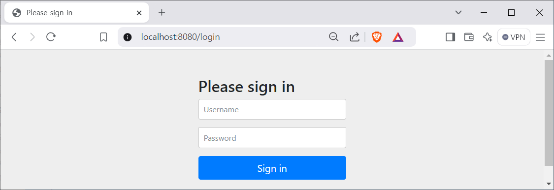 먼저 로그인을 해보자. 브라우저를 통해 localhost:8080을 요청하면 form 기반의 로그인 창이 나온다. username은 user, password는 위에서 생성된 password를 입력해준다.
