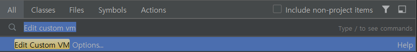 Edit Custom VM Options를 실행하고 idea64.exw.vmoptions라는 설정 파일을 수정할 수 있는데 하단에 다음처럼 옵션을 추가한다.