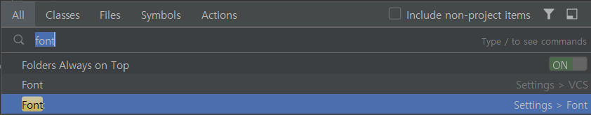 intellij에서는 double shift (shift 두번 연타)로 모든 설정을 검색할 수 있다.