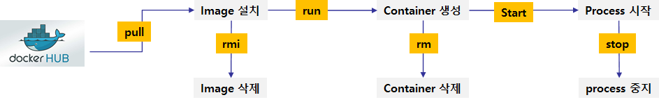 이번 포스트에서는 pull로 가져온 이미지를 container를 통해 실행하는 방법을 살펴보자. docker hub를 통해 pull 명령으로 가져온 이미지는 아래의 절차에 따라 사용 가능하다.