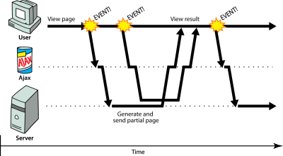 비동기 통신은 "submit" 동작이 아닌 javascript 이벤트를 처리하면서 발생하며 서버에서는 요청에 따라 데이터 조각만을 회신한다. 그럼 결과를 받은 javascript 단에서 데이터를 이용해서 화면을 그리게 된다. 당연히 동일환 화면을 새로 그릴 필요는 없고 필요한 부분만 갱신하므로 효율적이다.