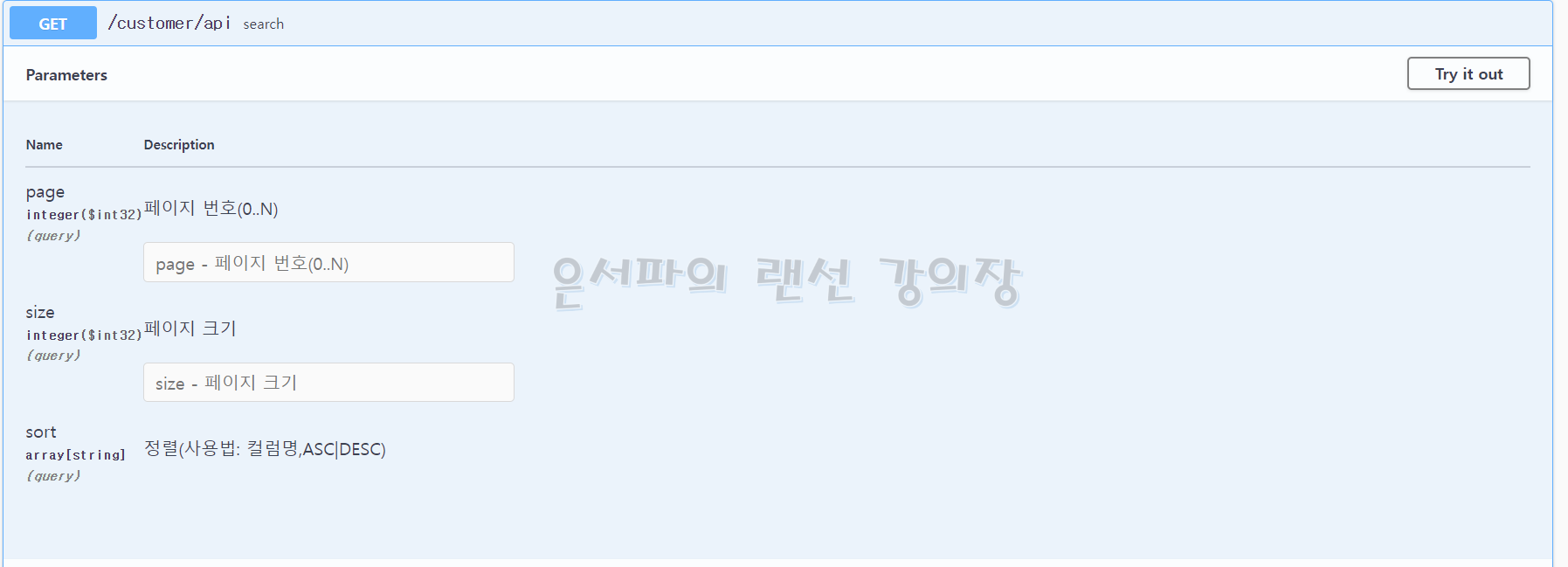 따라서 Swagger에게 어떤 타입이 왔을 때 이것을 다른 것으로 변경해서 처리할 수 있도록 설정해줄 필요가 있다. 이를 위해 페이징 정보를 저장하기 위한 클래스를 만들어보자.