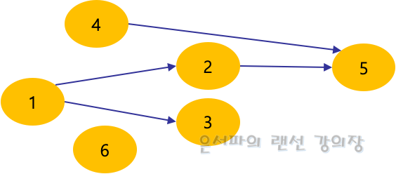 | 진입차수 | 0 | 0 | 0 | 0 | 1 | 0 |