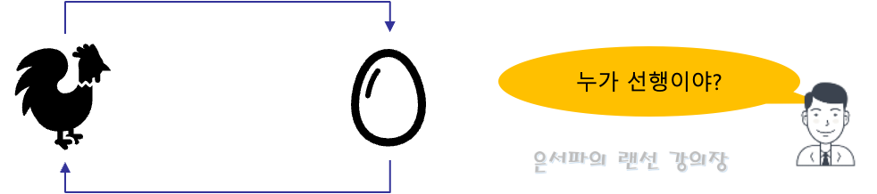 즉 닭이 먼저인지, 달걀이 먼저인지 처럼 선행 요소를 알 수 없는 경우는 사용할 수 없다.