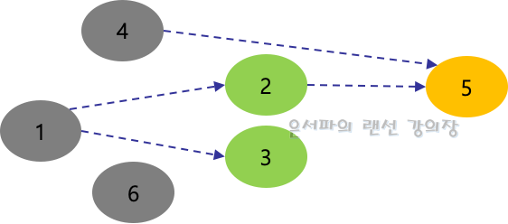 | 진입차수 | 0 | 1 | 1 | 0 | 2 | 0 |