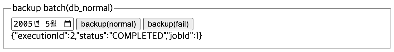 Job: [SimpleJob: [name=paymentBackupFailJob]] launched with the following parameters: [{JobParameter{name='yearMonth', value=2005-05, type=class java.lang.String, identifying=true}}]