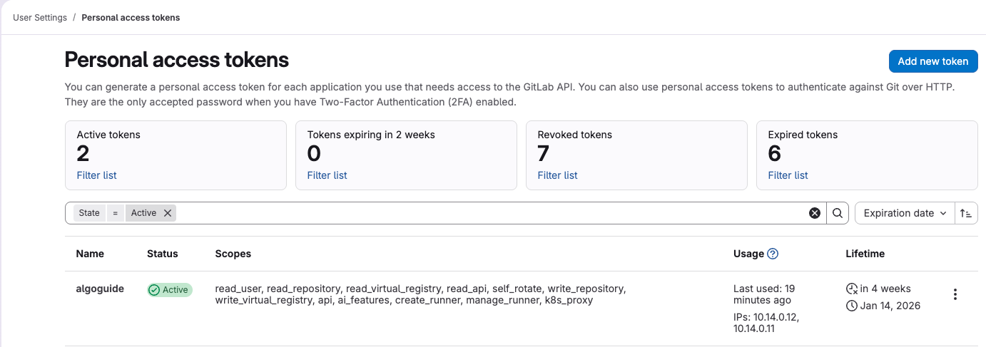GitLab의 preferences > Personal access tokens를 이용해서 token을 생성한다.