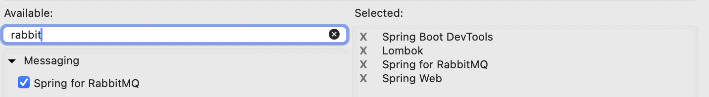 Spring에서 RabbitMQ를 사용한 웹 애플리케이션을 구성해보자. 의존성에는 다음을 추가한다.